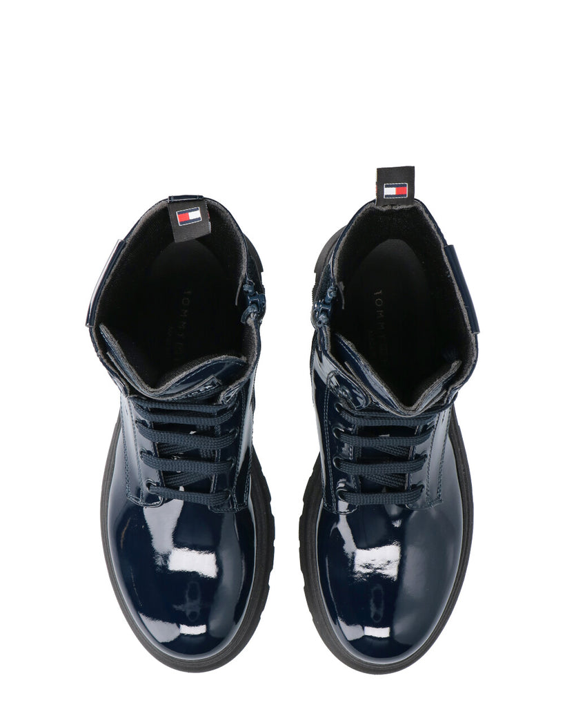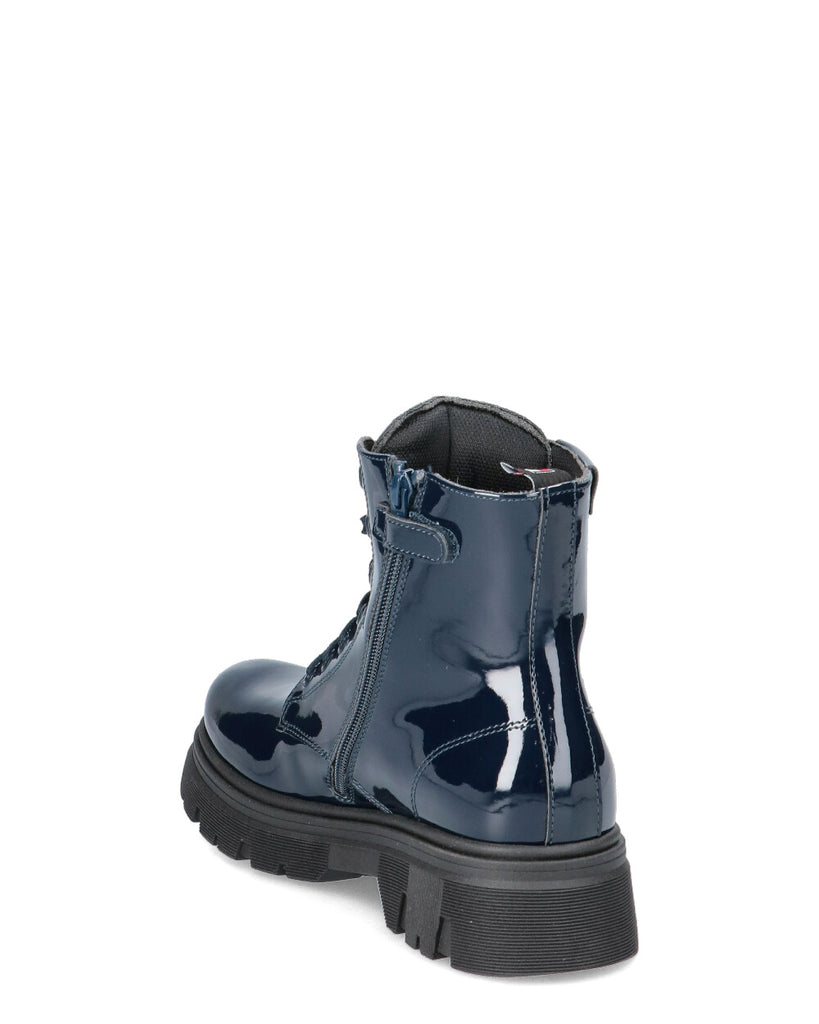 -Stivaletto in ecopelle lucida -Zip laterale e lacci -Interno in tessuto e soletta in pelle -Fondo gomma -Altezza fondo 4.5 cm -Altezza stivaletto 14 cm