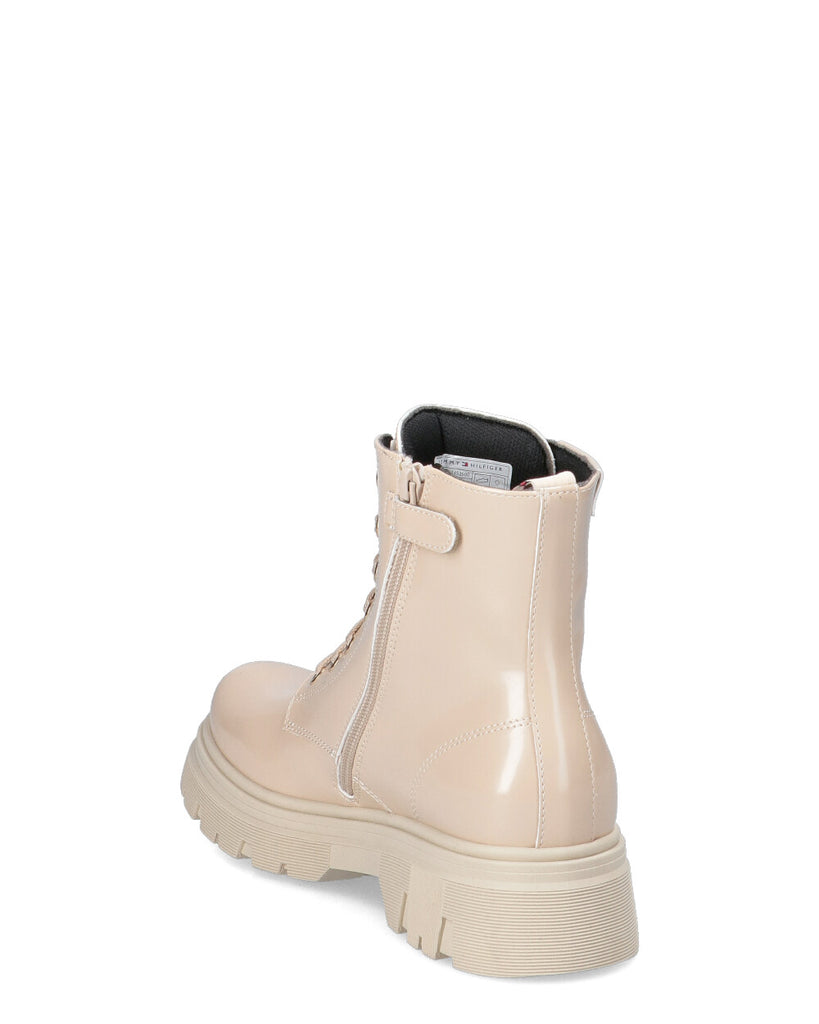 -Stivaletto in ecopelle con zip laterale e lacci -Fondo gomma -Altezza fondo 4.5 cm -Altezza stivaletto 14 cm