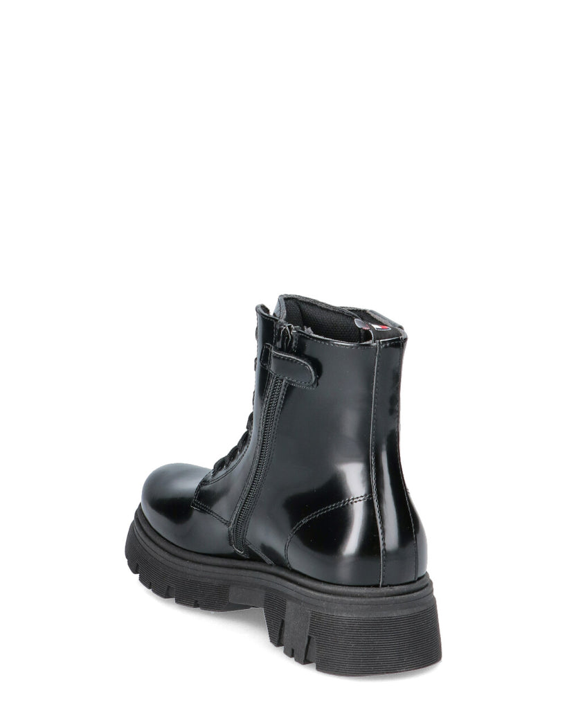 -Stivaletto in ecopelle con zip laterale e lacci -Fondo gomma -Altezza fondo 4.5 cm -Altezza stivaletto 14 cm