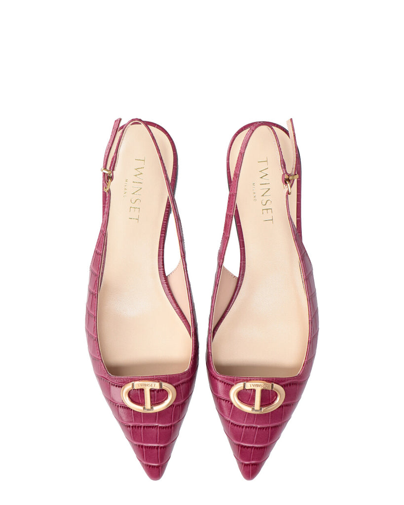 Slingback in pelle con stampa cocco Altezza tacco 1 cm