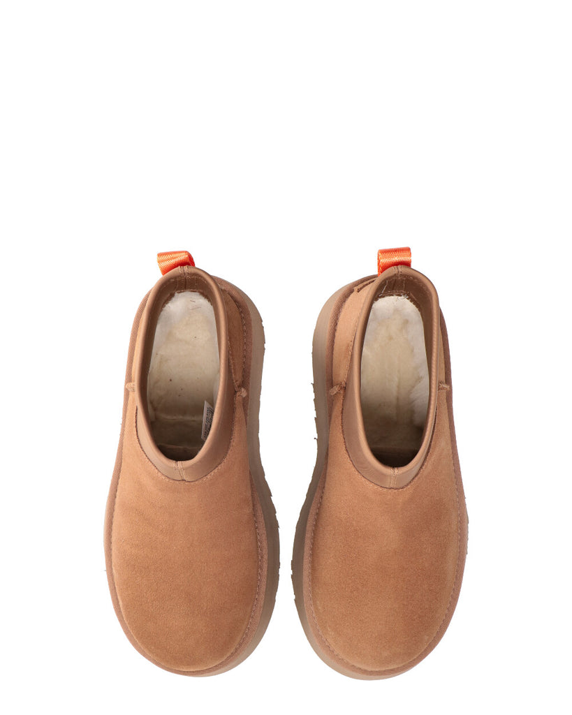 Contrafforte in camoscio, tirante posteriore in fibre di poliestere riciclato (100%), mascherina in camoscio, gambale in neoprene, fodera della mascherina in UGGplush™, realizzata con lana rigenerata (60%) e lyocell TENCEL™ (40%) Soletta in UGGplush™ (17 mm), realizzata con lana rigenerata (60%) e lyocell TENCEL™ (40%) Suola interna in schiuma Intersuola in EVA Suola in EVA da canna da zucchero Bordo in tessuto realizzato con fibre di poliestere riciclato (100%) Altezza del plateau: 5,1 cm Logo UGG®, etichetta in pelle scamosciata sul tallone in rilievo Modello ideale per: abbigliamento casual