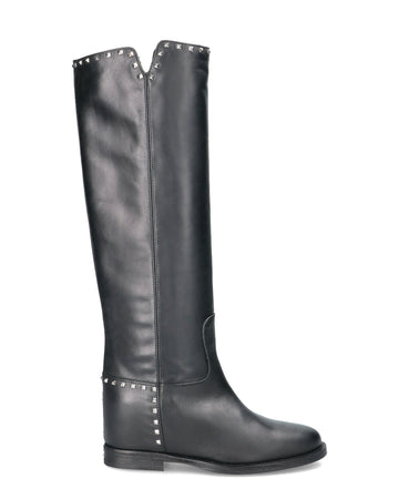 Stivale in pelle con borchie Zeppa interna 3.5 cm Altezza gambale 38 cm