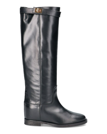 Stivale in pelle con lucchetto oro apribile e zeppa interna di 3,5 cm Guida alle taglie