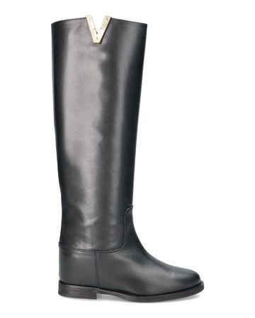 Stivale in pelle con "V" oro Zeppa interna 3.5 cm