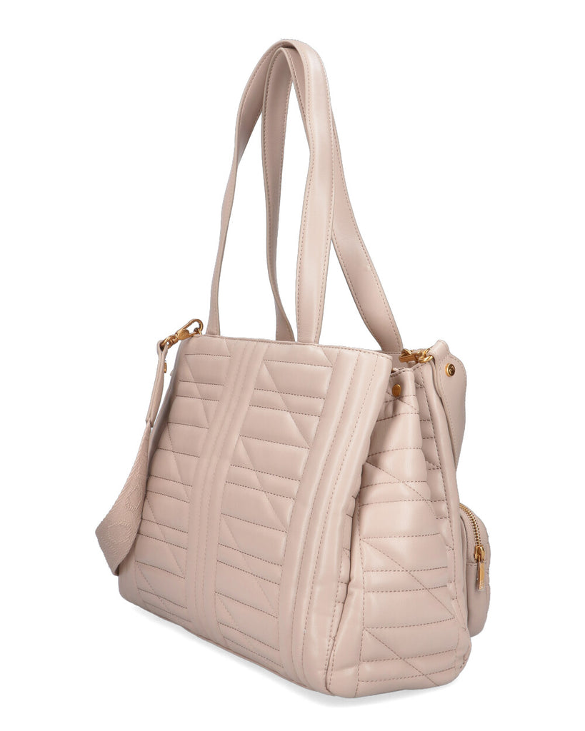 -Borsa tote in ecopelle effetto trapuntato -Chiusura con zip -Dotata di tracolla in tessuto regolabile e mini bag removibile -Interno datata di trescomparti ci cui uno con bottone magnetico -Dimensioni : 27*35*11 cm (altezza-lunghezza-profondità )
