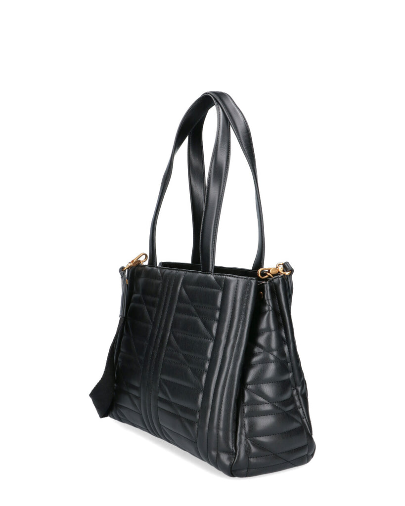 -Borsa tote in ecopelle effetto trapuntato -Chiusura con zip -Dotata di tracolla in tessuto regolabile e mini bag removibile -Interno datata di trescomparti ci cui uno con bottone magnetico -Dimensioni : 27*35*11 cm (altezza-lunghezza-profondità )