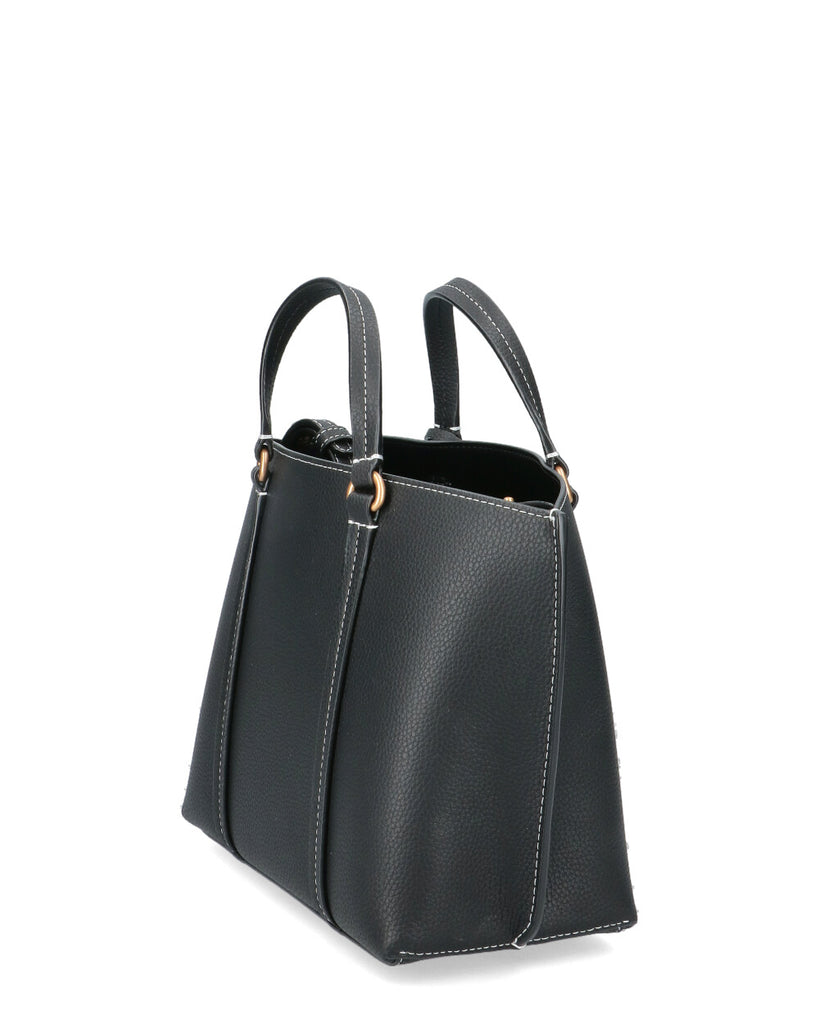 Borsa shopper large in pelle bottalata accoppiata. Doppio set di manici, di due dimensioni differenti, personalizzati con charm logato. Dimensioni 20*24*12 cm