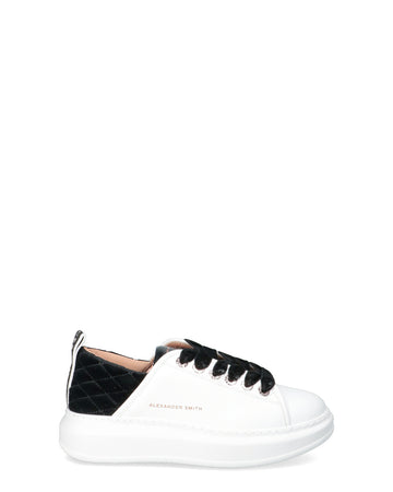 Sneakers in pelle Chiusura con lacci Dettaglio retro tallone con strass Fondo gomma Altezza fondo 3 cm