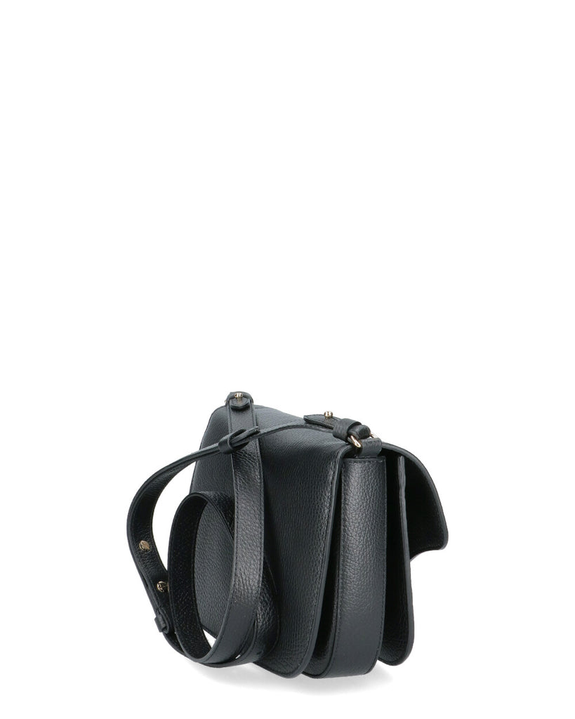 chiusura con magnete dettaglio logo C-Me tasca frontale 2 scomparti interni tasca interna chiusa con zip costruzione a soffietti galvanica oro chiaro logo timbro oro tracolla regolabile Dimensioni 22*17*8 cm