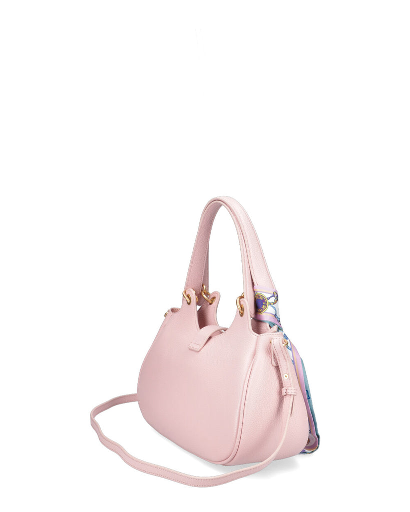 Borsa a mano in morbida pelle ,dotata di tracolla regolabile e removibile e foulard abbinato.chiusura con zip e patta con bottone magnetico. Dimensioni : 30*19*12 cm