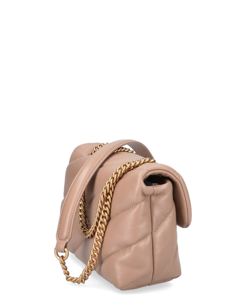 Mini Love Bag Puff in morbida nappa con maxi trapuntatura obliqua. La chiusura è completata dall'iconica fibbia in metallo Love Birds Diamond Cut. L'interno è foderato in microfibra scamosciata e comprende tramezza chiusa con zip e tasca a parete. La tracolla combina la classica catena metallica rotonda al pratico spallaccio in nappa. -Dimensioni : 15*21*10 (altezza-lunghezza-larghezza)