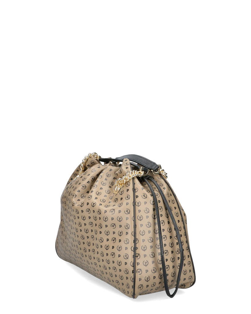 Borsa a secchiello in PVC, collezione Heritage Soft Touch, con dettagli in vitello. Doppio manico in catena scorrevole per doppia portabilità: a mano, a spalla. Dimensioni : 33*38*15 cm