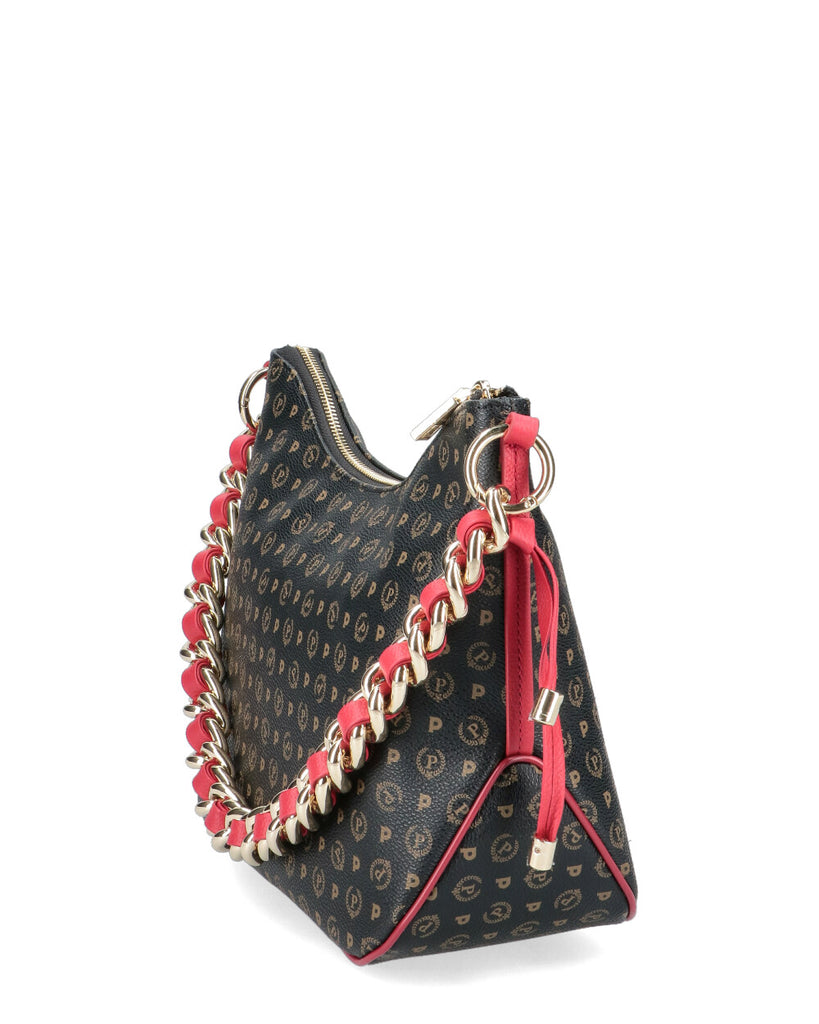 Borsa a tracolla in ecopelle logato Pollini Dotata di catena da spalla e tracolla removibile Dimensioni :23*24.5*8 cm