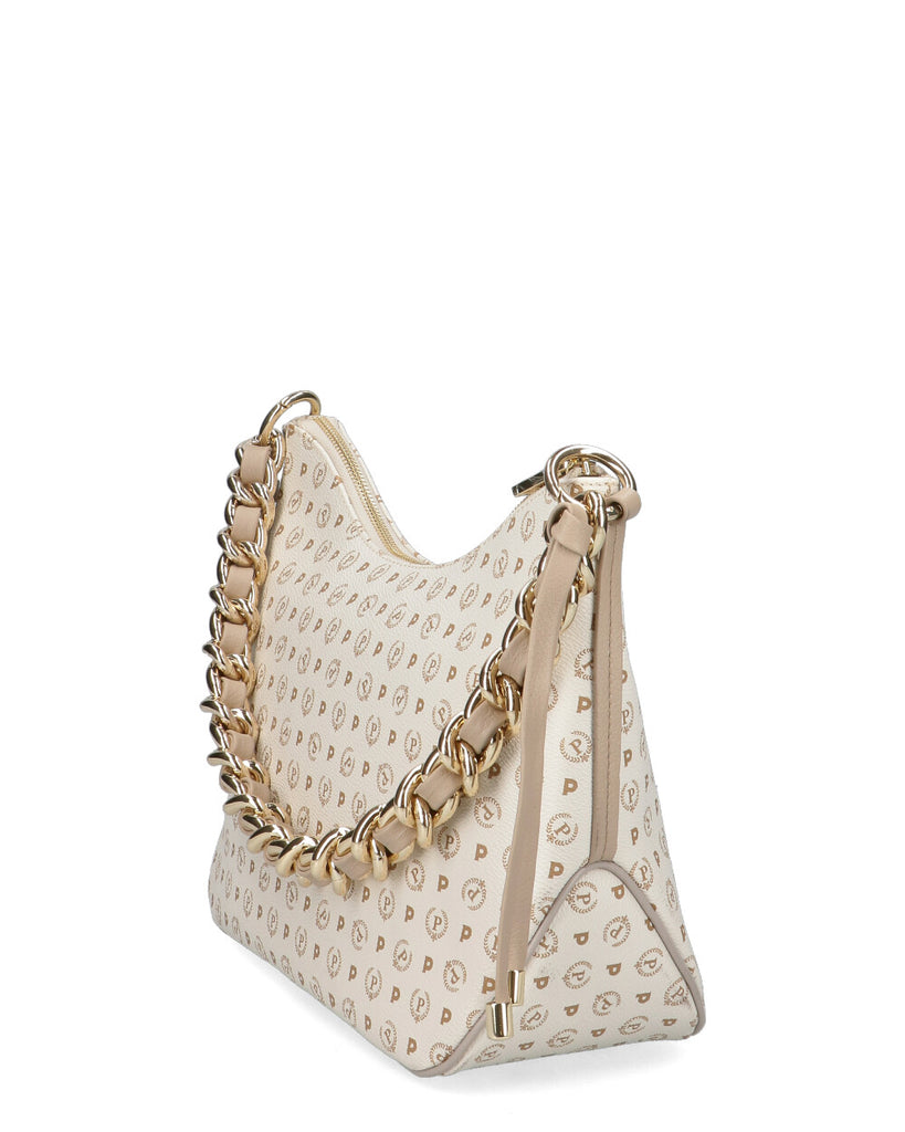 Borsa a tracolla in ecopelle logato Pollini Dotata di catena da spalla e tracolla removibile Dimensioni :23*24.5*8 cm