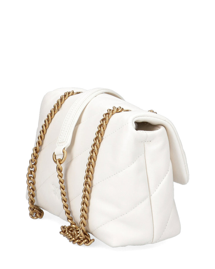 Mini Love Bag Puff in morbida nappa con maxi trapuntatura obliqua. La chiusura è completata dall'iconica fibbia in metallo Love Birds Diamond Cut. L'interno è foderato in microfibra scamosciata e comprende tramezza chiusa con zip e tasca a parete. La tracolla combina la classica catena metallica rotonda al pratico spallaccio in nappa. -Dimensioni : 15*21*10 (altezza-lunghezza-larghezza)