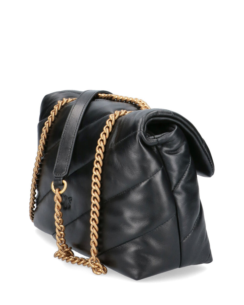 Classic Love Bag Puff in morbida nappa con maxi trapuntatura obliqua. La chiusura è completata dall'iconica fibbia in metallo Love Birds Diamond Cut. L'interno è foderato in microfibra scamosciata e comprende tramezza chiusa con zip e tasca a parete. La tracolla combina la classica catena metallica rotonda al pratico spallaccio in nappa. -Dimensioni : 18*27*11 cm (altezza-lunghezza-larghezza)