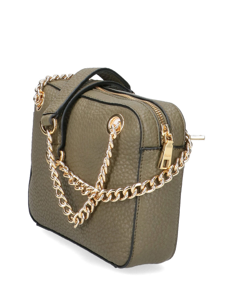 Borsa a tracolla caratterizzata dalla contaminazione con il mondo Heritage. La cornice sagomata esalta le forme del modello. Maxi logo P-alloro in metallo sul quadrante frontale. Contaminazione Heritage Tracolla in catena con spallaccio Chiusura magnetica Tasca posteriore con zip Interno foderato Galvanica oro chiaro Colore: nero/nero Dimensioni: 18X24X12