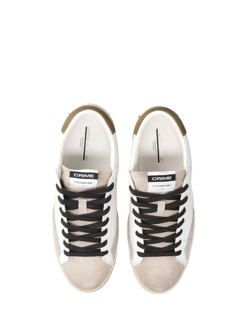 Tomaia in pelle bianca, dettagli in suede grigio chiaro