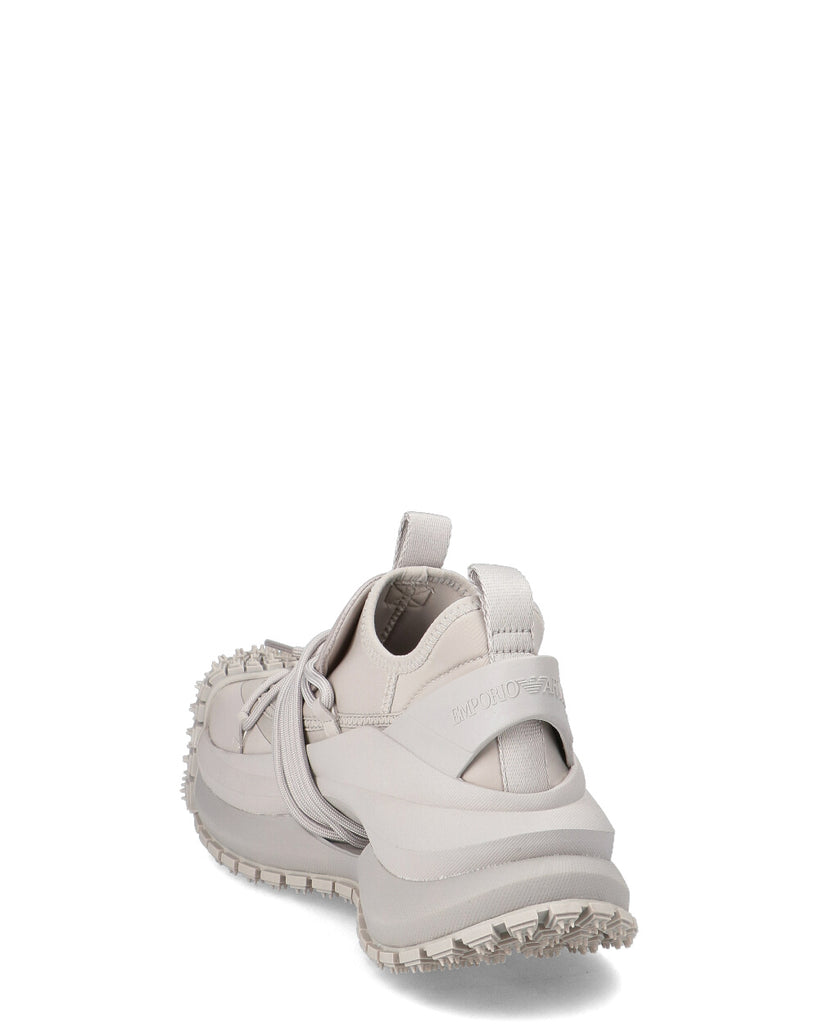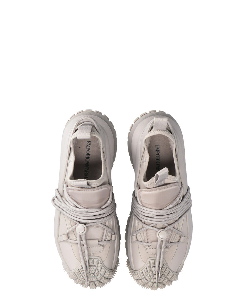 Tomaia in nylon e scuba Punta tonda Allacciatura con coulisse Tirante sul retro Suola in gomma