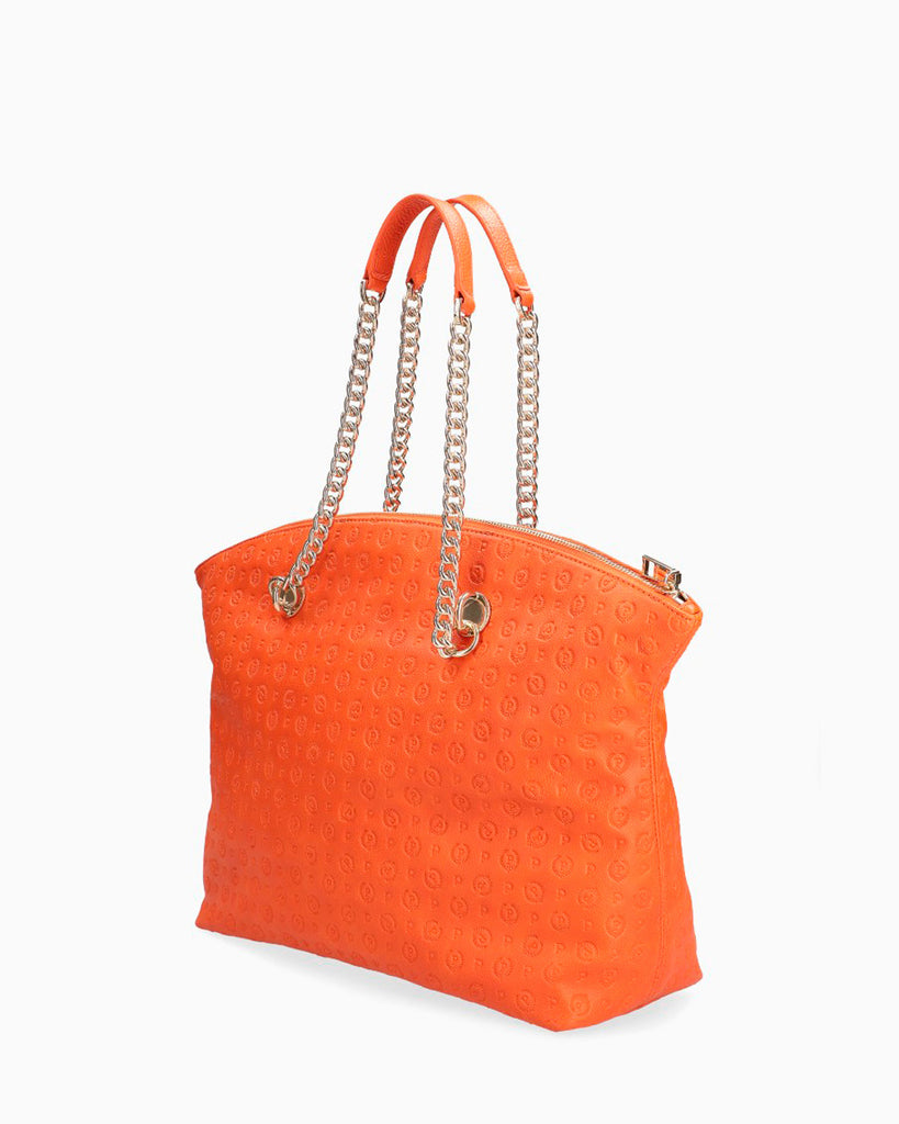 -Shoulder bag in ecopelle -Stampa logo in rilievo -Manici in pelle con catene -Dimensioni :31x20x16 cm