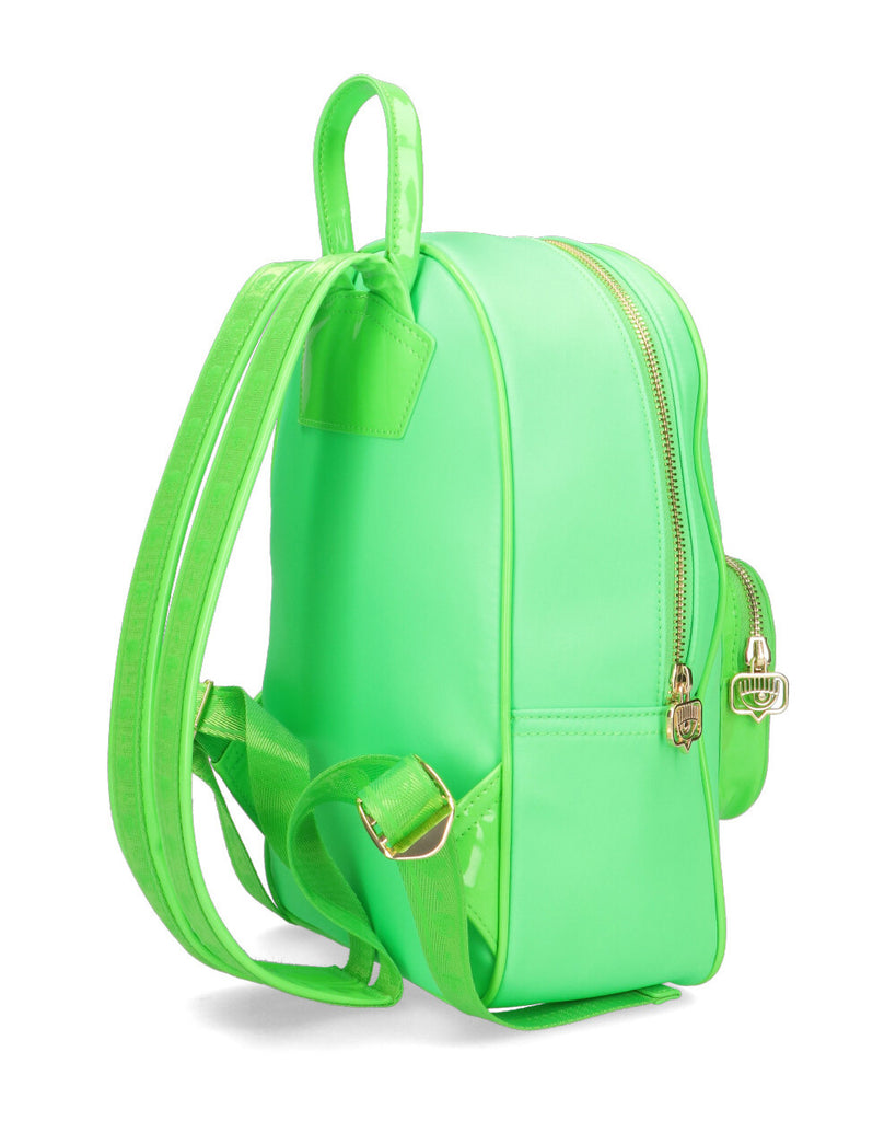 -Zaino in tessuto sintetico con bretelle logate e dettaglio lucido Eyelike sul davanti. -Dimensioni : 29*20*11 cm