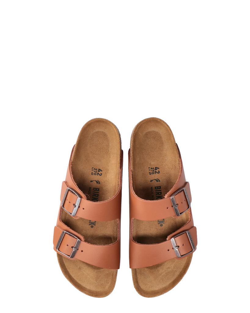 Plantare anatomico in sughero e lattice Tomaia: pelle naturale Sottopiede: pelle scamosciata Suola: EVA Dettagli: due cinturini con fibbia ad ardiglione in metallo regolabili individualmente “Made in Germany” Calzata stretta