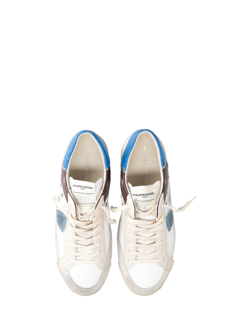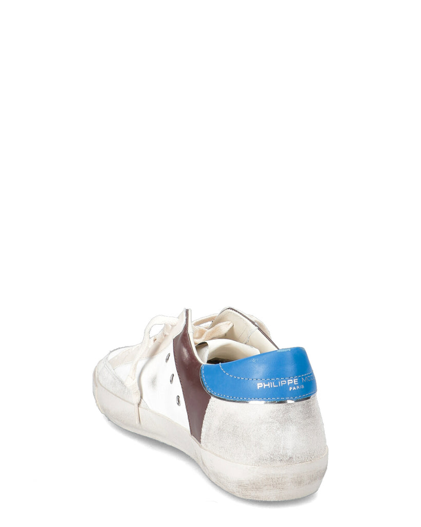 Sneaker bassa in pelle effetto used spoiler a contrasto in pelle lavata. Foderata internamente in spugna di cotone, ha soletta interna imbottita ed estraibile, suola in gomma fasciatura artigianale irregolare con sporcature. Altezza fondo 2.5 cm