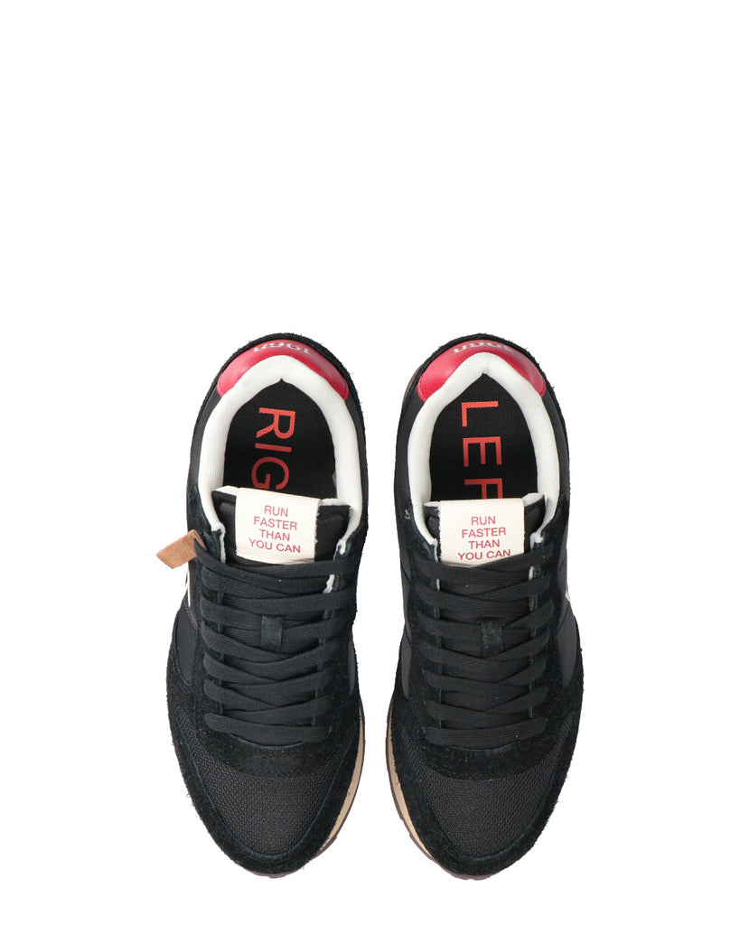 Sneakers in tessuto e riporti in pelle scamosciata Fodera interna in tessuto Soletta interna estraibile Altezza fondo 3 cm