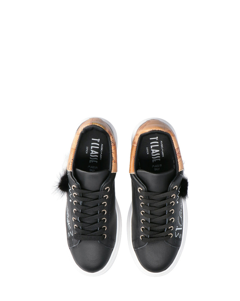 -Sneakers in pelle con dettagli laterali -Fondo gomma -Altezza fondo 4.5 cm