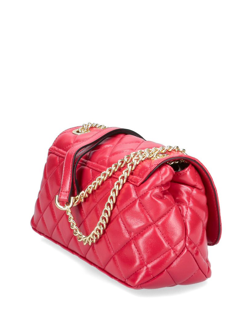 Elementi metallici posizionati differentemente per rendere ogni singolo modello unico ed esclusivo Doppia portabilità: a spalla, a bandoliera Tracolla scorrevole in catena con doppio spallaccio Chiusura magnetica Due scomparti interni Interno foderato con tasca interna con zip e tasca aperta Dimensioni: 28X10X17